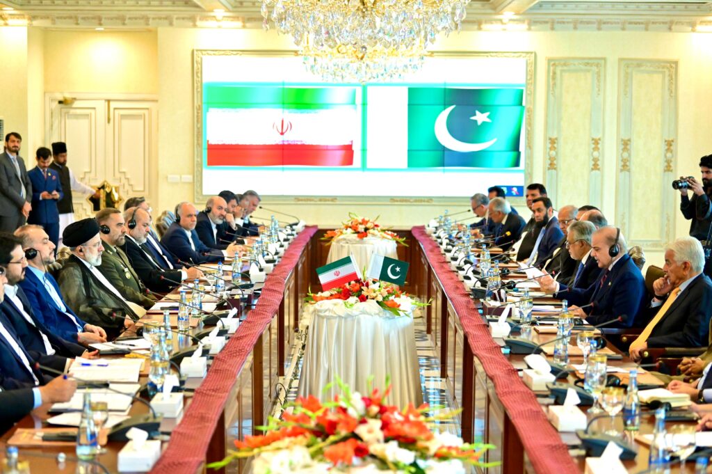 Islamabad : Prime Minister Muhammad Shehbaz Sharif met with Iranian President H.E. Dr. Seyyed Ebrahim Raisi in Islamabad. Ministers and senior officials from both sides were present in the meeting.