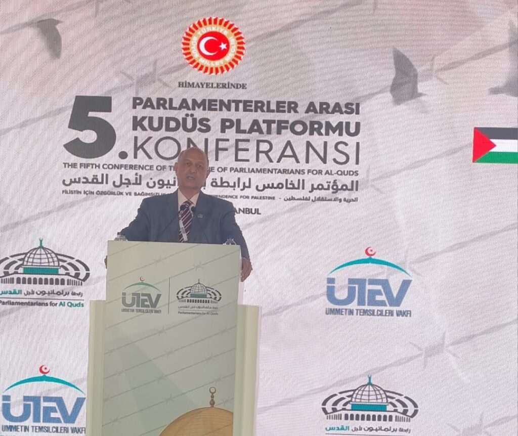 Istanbul : In his address to International Conference on Palestine, Senator Mushahid Hussain Sayed said that ‘Palestinians armed resistance to brutal Israeli occupation was fully justified under International Law and the UN Charter’, adding that ‘Palestine is part of Pakistani DNA’. The three day conference, inaugurated by President Erdogan, is being attended by parliamentarians and political leaders from 80 countries. Mushahid Hussain, who is member of the 12-member Executive Board of Parliamentarians for Palestine & Al Quds’, said the ‘entire people and political parties of Pakistan support the just cause of Palestine, as Pakistan’s policy on Palestine was first enunciated by the Father of the Nation, Quaid e Azam Muhammad Ali Jinnah, even before the independence of Pakistan’. Condemning the Gaza Genocide by Israel, Mushahid termed it the ‘first live televised genocide in modern history’, adding that ‘both Muslim regimes and West countries have let down the Palestinians, except for public opinion in Muslim and Western countries’. He said the ‘Al Aqsa Storm’ unleashed by Hamas on October 7 has altered the global political landscape, especially in the Middle East by shattering the myth of Israeli invincibility’. Giving Pakistan’s track record of supporting Palestine, Mushahid Hussain referred to Pakistan being the only non-Arab country to take part in two Arab-Israeli Wars in 1967 and 1973, plus first recognition of PLO under Yasser Arafat took place at the Lahore Islamic Summit in 1974. Mushahid urged an immediate ceasefire & steps to establish an independent Palestine with Jerusalem as its capital. The Pakistan Parliamentary Delegation attending the conference includes Senator Mushtaq Ahmed, MNAs Sheryar Meher, Chaudhry Shahbaz & Junaid Akbar. The Pakistani delegates also met President Erdogan and Speaker of Turkish Parliament, Dr Noman Kurtulmus.