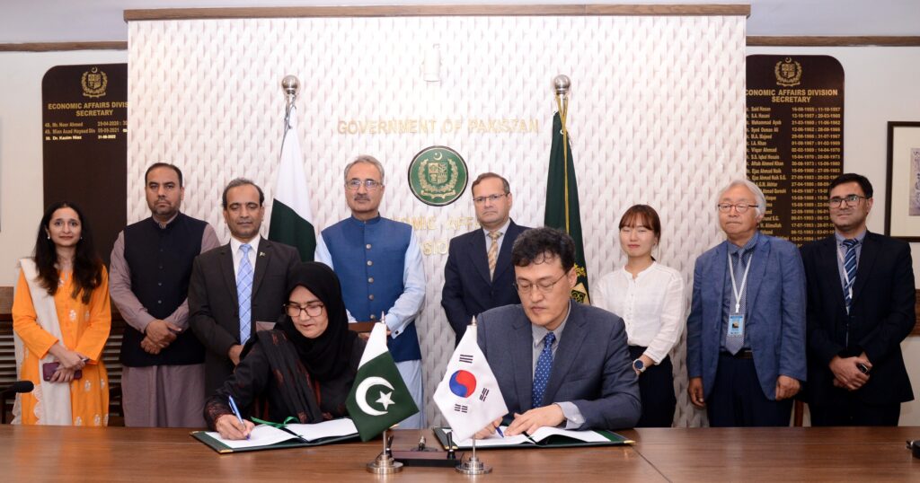 The Aide-Mémoire was signed by Mr. Sajid Manzoor Asadi, Joint Secretary, Ministry of Economic Affairs, and Mr. Bonhyun Koo, Director of the Asia Team, EDCF Mission. The signing was witnessed by Dr. Kazim Niaz, Secretary of the Ministry of Economic Affairs and other officials from the MoEA and EDCF. Additionally, a project concept for the construction of a Pediatric Hospital in Jamshoro was signed, with EDCF committing USD 60 million in financing for the hospital’s construction in Sindh.