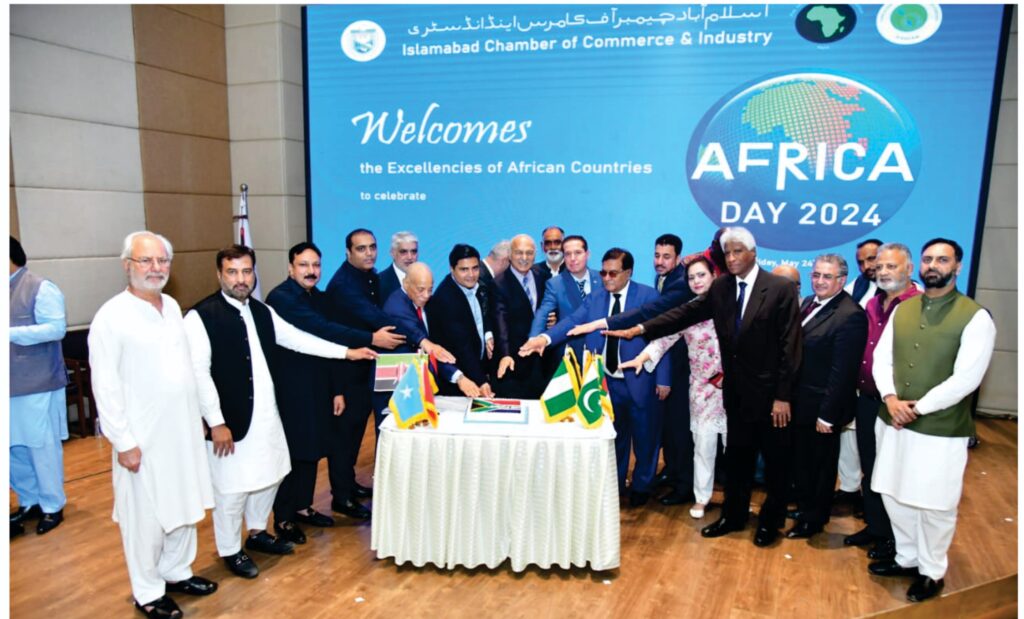 ISLAMABAD: Africa, with its diverse cultures, vibrant traditions and spirit stands as a testament to the resilience of its people. From the struggle for independence to the pursuit of development, Africa has demonstrated its commitment to progress, prosperity and peace. This has been stated by Mr. Shehryar Akbar Khan Additional Foreign Secretary while addressing a conspicuous Africa Day ceremony organized by Islamabad Chamber of Commerce and Industry.
