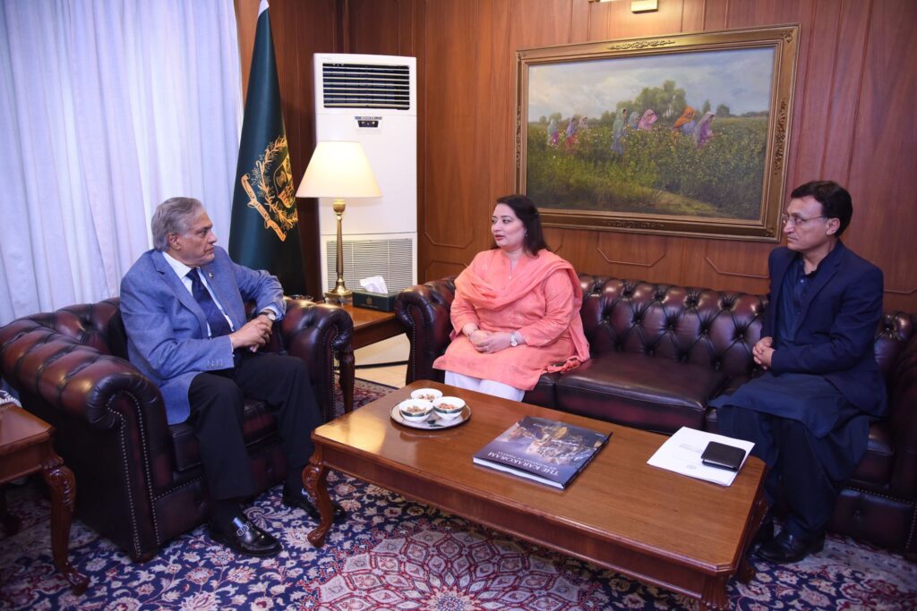 Islamabad : Coordinator to the Prime Minister on Climate Change and Environmental Coordination Romina Khurshid Alam called on Deputy Prime Minister and Foreign Minister Senator Mohammad Ishaq Dar.