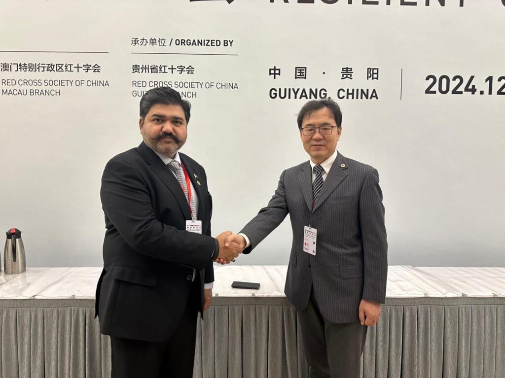 Guiyang, China – Chairman Sardar Shahid Ahmed Laghari of the Pakistan Red Crescent Society (PRCS) held a landmark meeting with His Excellency Mr. He Wei, President of the Red Cross Society of China (RCSC) and Vice President, Mr. Sun Shuopeng, on the sidelines of the International Seminar on Red Cross Resilient Communities in Guiyang, Guizhou Province. The meeting marked a significant milestone in the growing partnership between the two humanitarian organizations.