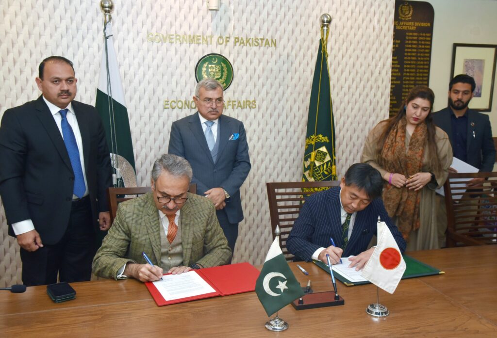 Islamabad : A signing ceremony for the Grant Agreement, Exchange of Notes and Record of Discussion between the Governments of Pakistan and Japan regarding Japanese grant-in-aid project titled as, “Improvement of Maternal and Child Health Equipment in Flood-affected and Surrounding Areas in Khyber Pakhtunkhwa” was held in the Ministry of Economic Affairs. Dr. Kazim Niaz, Secretary Ministry of Economic Affairs, signed the project from Pakistan’s side after the approval of Federal Minister Ahad Cheema and H.E Takano Shuichi, Charge d’Affaires ad Interim of Japan to Pakistan, signed it on the behalf of Japanese Government.