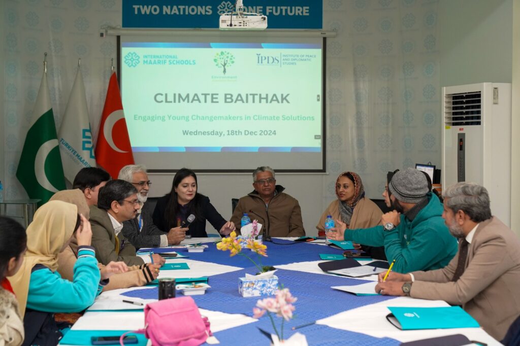 A dynamic gathering of young change-makers, experts, and environmental advocates took place today at the Climate Baithak, a collaborative event organized by the Institute of Peace and Diplomatic Studies (IPDS) and the Environment Journalist Forum (EJF). The event served as a platform to foster trilateral cooperation between media, academia, and think tanks, with the ultimate goal of accelerating climate action and addressing the global environmental crisis.