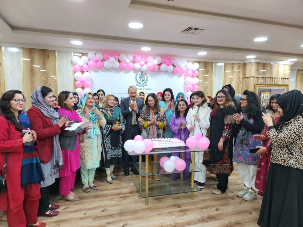 Islamabad : The Ministry of Human Rights commemorated National Working Women’s Day 2024 with female officers and officials from the Ministry, its attached departments, commissions, and various ministries. Federal Secretary for Human Rights, Allah Dino Khowaja, acknowledged the significant contributions of women in public service and emphasized the importance of fostering inclusive, equitable, and safe workplaces. He highlighted the Ministry’s commitment to advancing policies that ensure equal opportunities, gender equity, and protection against workplace discrimination. He stated, “Today, we not only celebrate the professional achievements of women but also recognize their ongoing efforts to break societal stereotypes, dismantle workplace barriers, and ensure equal opportunities for all. Women in Pakistan have shown exceptional courage and resilience in overcoming gender biases and contributing significantly to public administration, education, healthcare, technology, and entrepreneurship.”