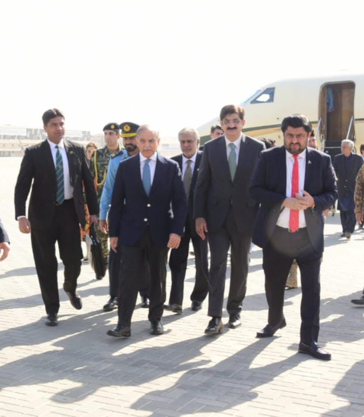 Karachi ; Prime Minister Shehbaz Sharif has arrived in Karachi on a day-long visit.