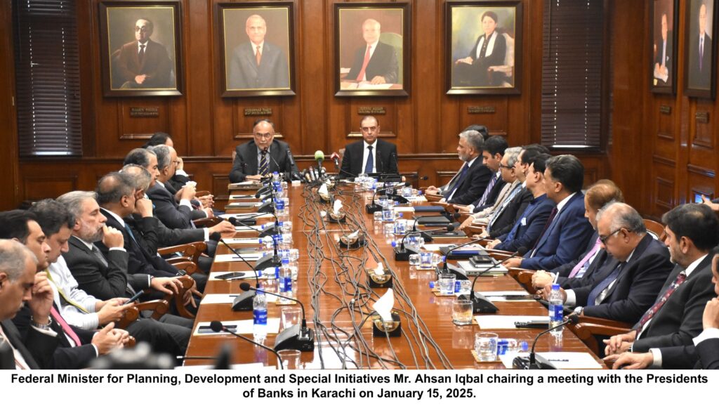 Karachi: In an address at the State Bank of Pakistan, Planning Minister Prof. Ahsan Iqbal drew attention towards the fundamental role of financial institutions in realizing the objectives of the URAAN Pakistan – National Economic Transformation Plan 2024-29. The meeting, a conclave of the presidents of major banks across the country, marks a significant step towards enhancing Pakistan’s economic framework and achieving sustainable growth.
