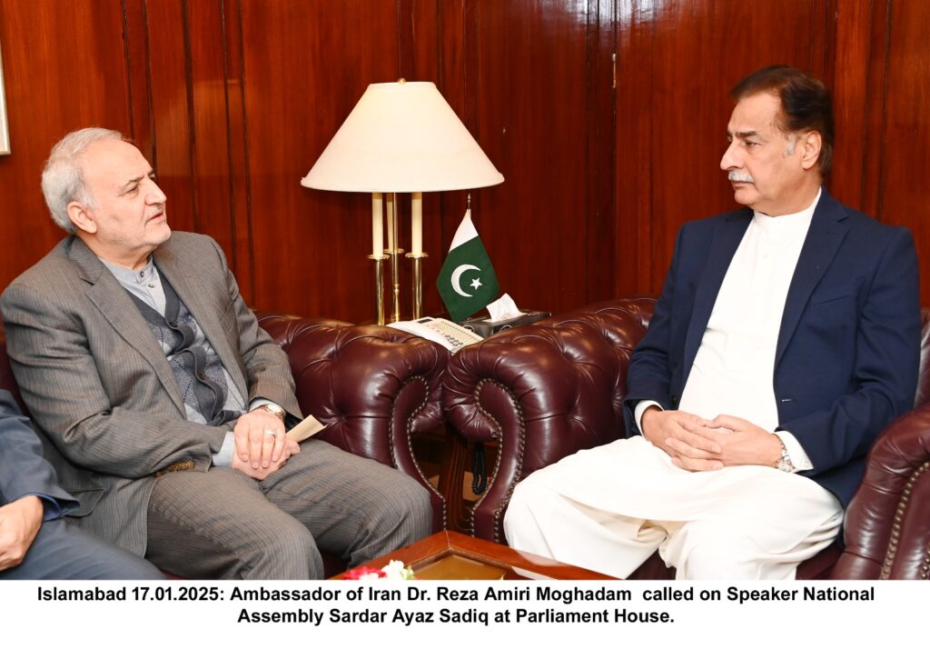 Ambassador Reza Amiri Moghadam, in turn, lauded Pakistan’s efforts in promoting regional harmony and stability. He expressed Iran’s strong commitment to furthering its brotherly relations with Pakistan and praised Speaker Sardar Ayaz Sadiq’s dedication to enhancing parliamentary cooperation between the two countries.