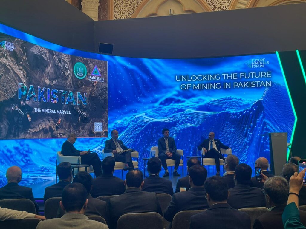 KSA : At the Future Minerals Forum (FMF) in Riyadh, Pakistan made a significant impact, showcasing its vast untapped mineral wealth and positioning itself as a global mining powerhouse. The delegation’s session opened with the screening of ‘Beneath the Surface: Pakistan’s Mining Renaissance’, a compelling film that highlighted the country’s abundant reserves of gemstones, non-metallic minerals, industrial minerals, metals, and rare-earth elements.