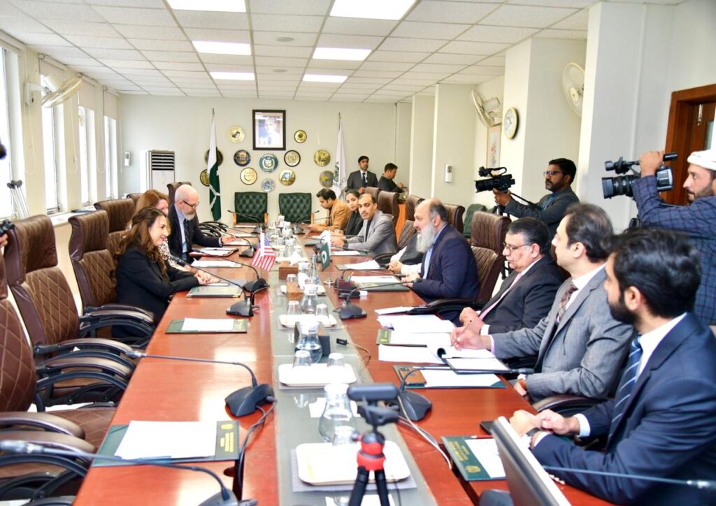 ISLAMABAD : US Charge d’Affaires, Ms. Natalie A. Baker, called on Federal Minister for Commerce, Jam Kamal Khan, to discuss ways to strengthen bilateral trade and investment ties and explore future avenues for cooperation between the two nations.