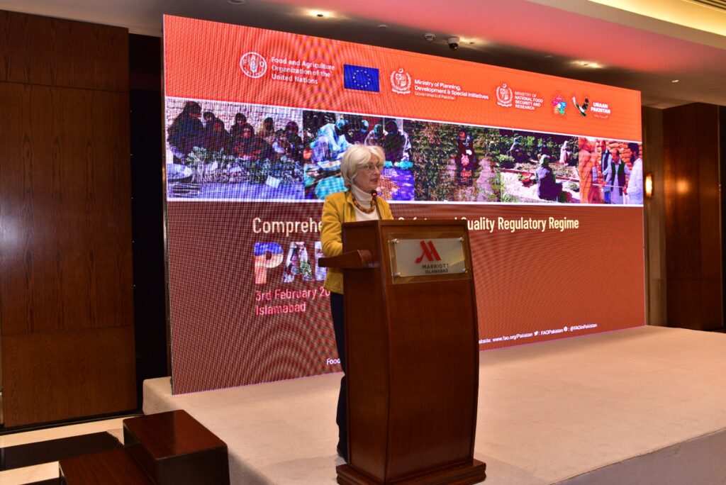 Ms Nadia Rahman, National Coordinator of the Comprehensive Food Safety and Quality Regulatory Regime for Pakistan, emphasized the need to improve the national coordination mechanism to strengthen the food control system in Pakistan. Major General M Ayub Ahsan Bhatti, Director General of Land Information Management System (LIMS) highlighted the role of LIMS for safety and quality in Pakistan’s Green Future for a stronger economy.