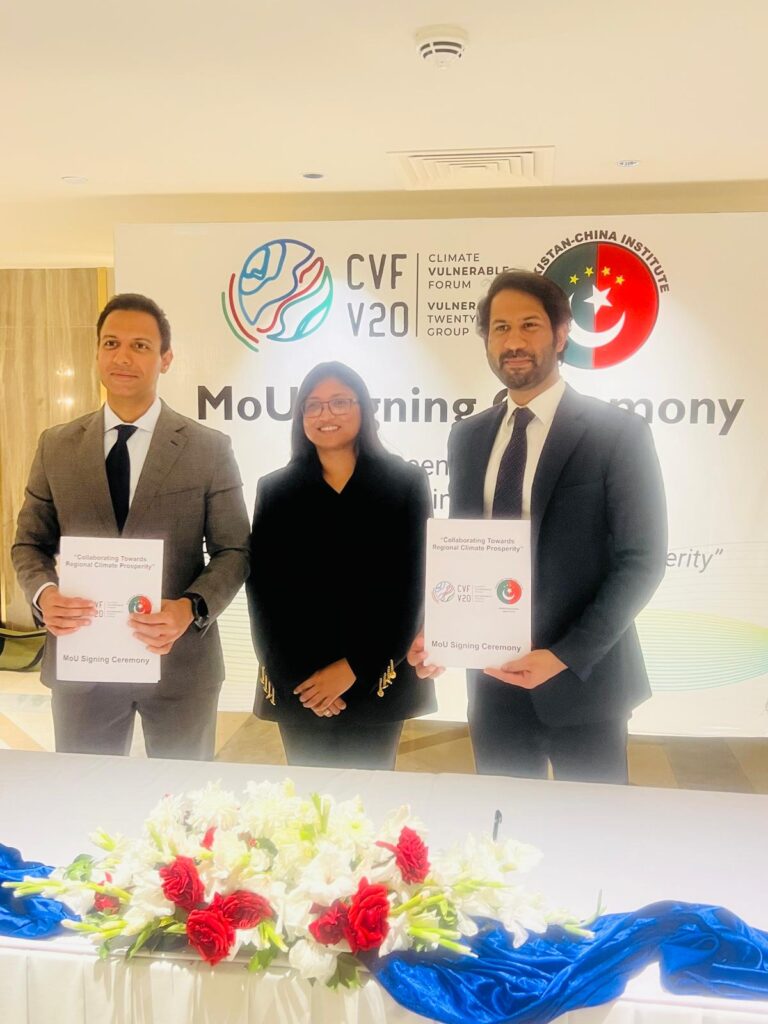 Islamabad: – The Climate Vulnerable Forum – Vulnerable Twenty group of Finance Minister (CVF-V20) and the Pakistan-China Institute (PCI) are pleased to announce the signing of a landmark Memorandum of Understanding (MoU) to strengthen cooperation on climate resilience, sustainable development, and environmental governance in Pakistan and the broader region.