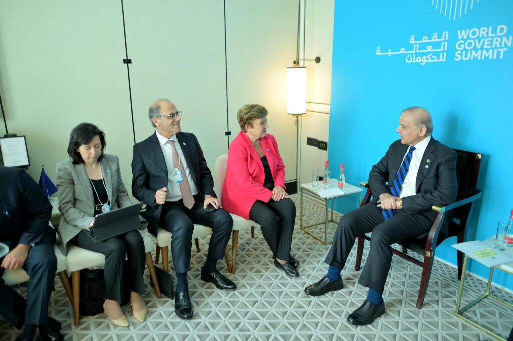 Dubai : Prime Minister Muhammad Shehbaz Sharif held a meeting with Ms. Kristalina Georgieva, Managing Director (MD) of the International Monetary Fund (IMF), on the sidelines of the World Government Summit (WGS) 2025. The meeting focused on Pakistan’s ongoing IMF program and the macroeconomic stability achieved through the government’s comprehensive reform agenda.