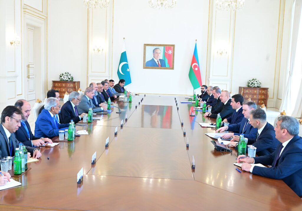 Baku : Prime Minister Shehbaz Sharif and President of Azerbaijan Ilham Aliyev reaffirmed their commitment to boost trade turnover and increase cooperation across various sectors including defence, transportation and connectivity.