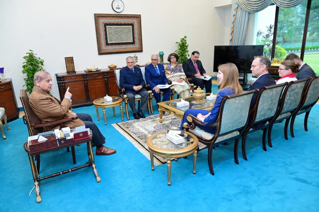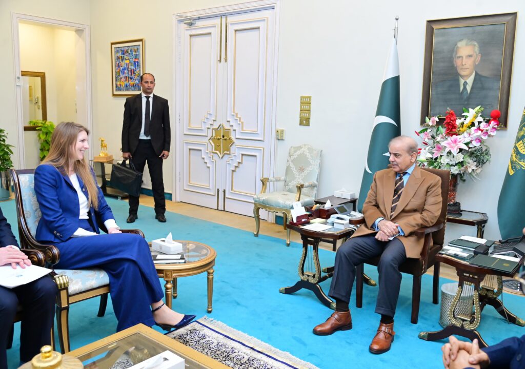 Islamabad : High Commissioner of the United Kingdom Ms. Jane Marriott, paid a courtesy call on the Prime Minister at Prime Minister House earlier.