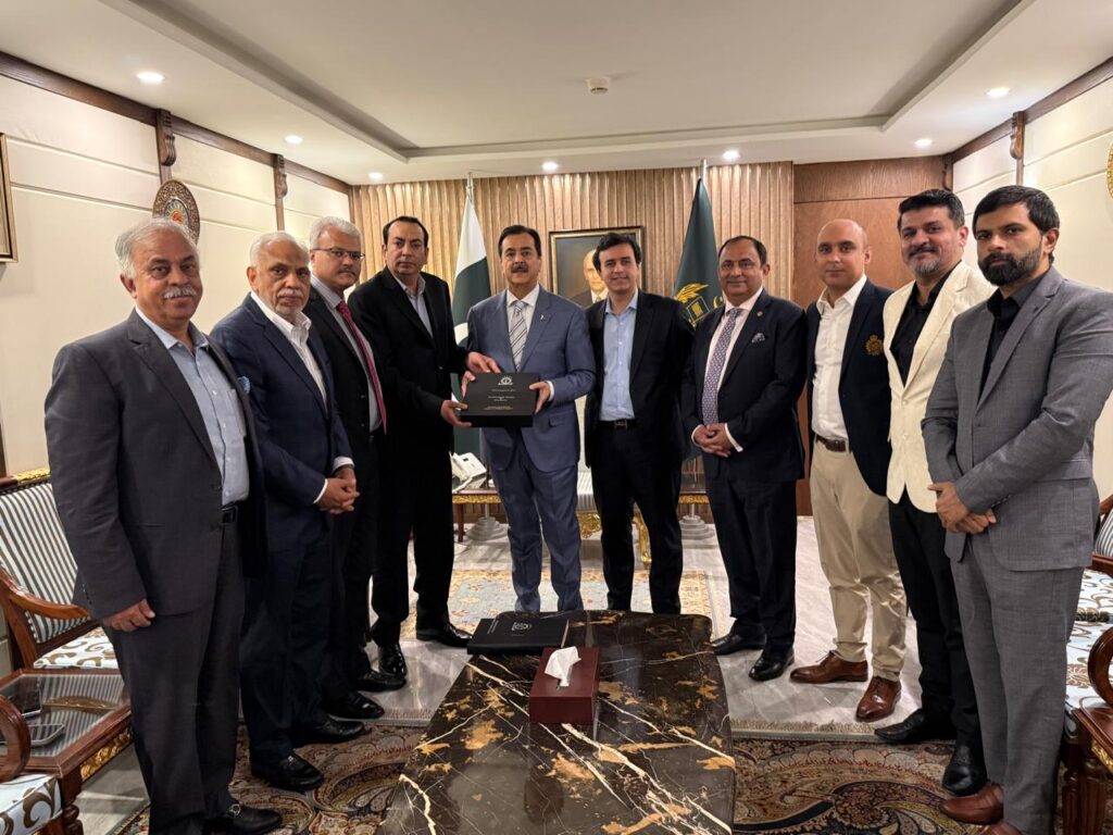 Islamabad :– Senate Chairman Syed Yusuf Raza Gilani met with a delegation led by Atif Ikram Sheikh, President of the Federation of Pakistan Chambers of Commerce and Industry (FPCCI), at the Parliament House. The meeting was attended by FPCCI Vice President Zaki Ijaz, Chairman Capital Office Karim Aziz Malik, Chairman Coordination Capital Office Sohail Hussain Malik, Momin Malik, Tariq Mahmood, and Omar Salim, executive members of the FPCCI.