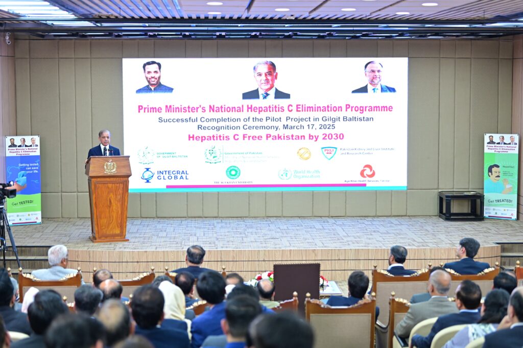 Speaking at a recognition ceremony here, marking the successful completion of the pilot project of the PM’s National Hepatitis C Elimination Programme in Gilgit Baltistan, the prime minister emphasized the importance of the initiative in addressing the widespread impact of the disease in the country.