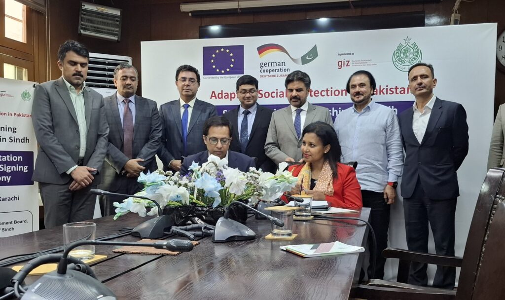 Karachi – In a significant step forward towards building a resilient, inclusive, and climate-adaptive social protection system in Pakistan, the Government of Sindh and GIZ Pakistan, with support from the European Union (EU) and Germany’s Federal Ministry for Economic Cooperation and Development (BMZ), reached another important milestone and signed Implementation Agreement.