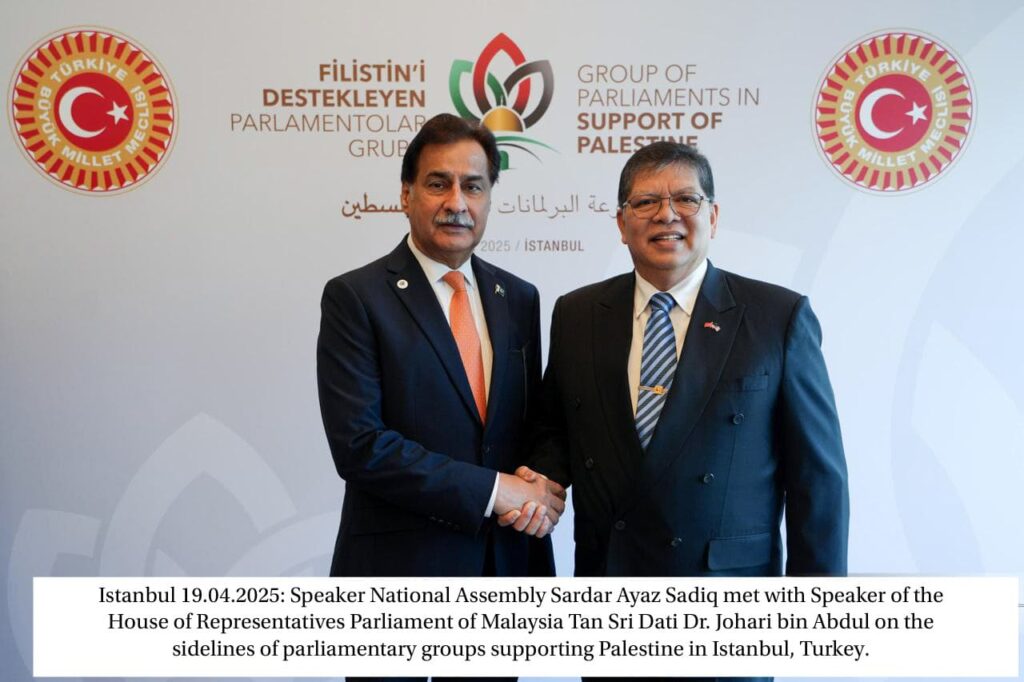 Istanbul : Speaker National Assembly Sardar Ayaz Sadiq reiterated Pakistan’s unwavering support for Palestine and calling for urgent global action to address the ongoing oppression and suffering of the Palestinian people. He emphasized Pakistan’s long-standing position in favour of a sovereign, viable, and independent Palestinian state based on pre-1967 borders with Al-Quds Al-Sharif as its capital He drew a parallel to Indian illegally occupying Kashmir and drew the world’s attention to the plight of vulnerable and innocent Kashmiris braving the Indian aggression.