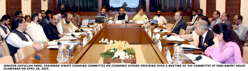 ISLAMABAD, — A meeting of the Senate Standing Committee on Economic Affairs, chaired by Senator Saifullah Abro, witnessed serious concerns and strong criticism over the handling of major public welfare projects, including the Sindh Solar Energy Project (SSEP), housing schemes under foreign funding, and multiple transmission and infrastructure projects. The Committee meeting was also attended by Senators Haji Hidayatullah Khan, Falak Naz, Kamran Murtaza, Rahat Jamali, Kamil Ali Agha, Dr. Afnan Ullah Khan, and Saifullah Sarwar Khan Nyazee.