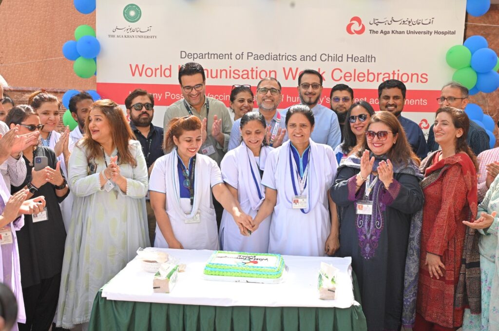 AKUH was led by the Department of Paediatrics and Child Health team, led by Dr. Fyezah Jehan, Professor and Chair, and Dr. Ali Faisal Saleem, Vice Chair and Associate Professor. The ceremony featured a symbolic cake cutting and a call to action for continued commitment to child health and immunisation advocacy.