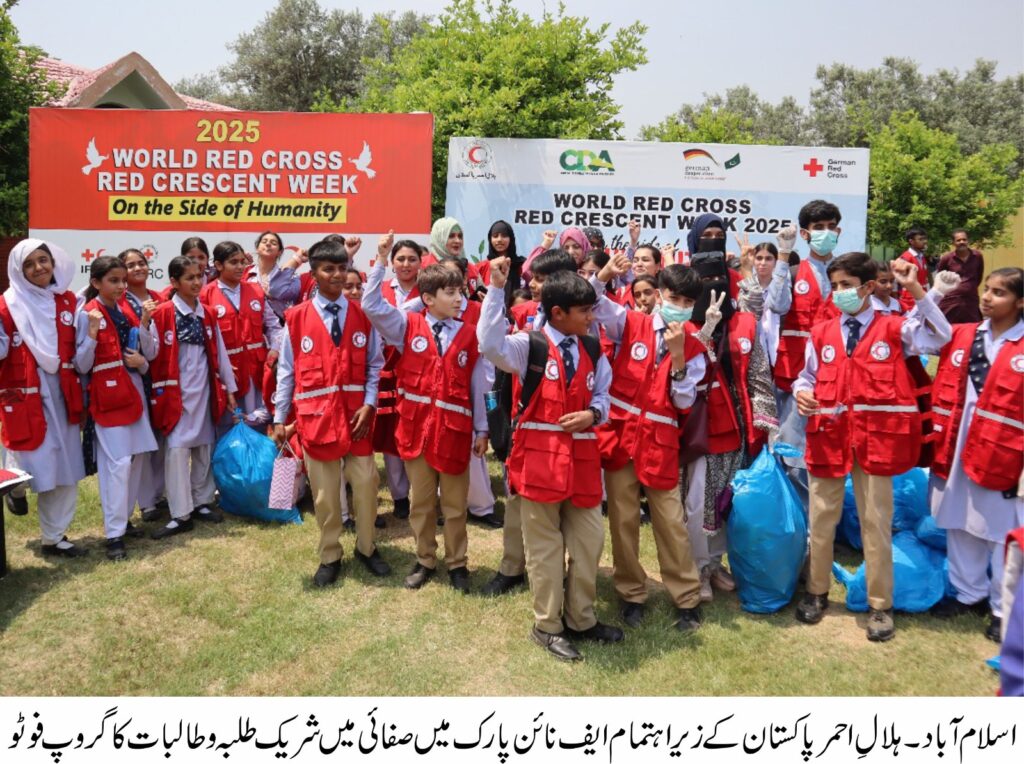 Islamabad-: Pakistan Red Crescent Society (PRCS) in collaboration with the German Red Cross organised a Plantation and Cleanliness Drive at F-9 Park. The initiative is part of a weeklong World Red Cross and Red Crescent week celebrations under this year’s global theme ‘On the Side of Humanity’.