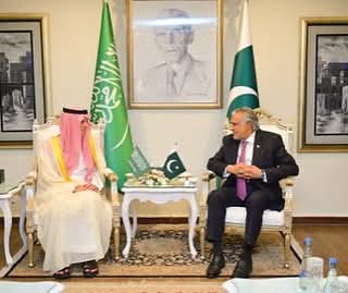 Islamabad : Deputy Prime Minister and Foreign Minister, Senator Mohammad Ishaq Dar, received Saudi Arabia’s Minister of State for Foreign Affairs, Adel Al-Jubeir, at the Ministry of Foreign Affairs.