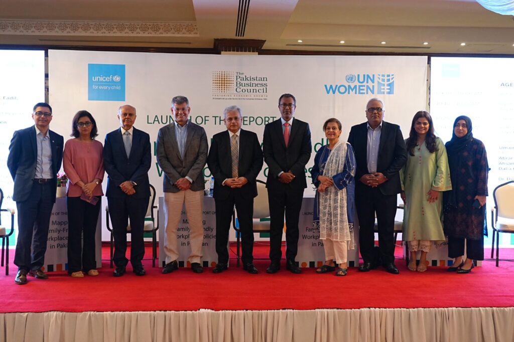 Islamabad: – The Pakistan Business Council (PBC), UNICEF, and UN Women jointly launched a landmark report, “Mapping Family-Friendly Workplace Policies in Pakistan,” underscoring the critical role of family-friendly policies in supporting the social sector, businesses, employees, and Pakistan’s broader economic growth. The report offers valuable insights into how progressive workplace measures—such as parental leave, flexible working arrangements, and childcare support—can enhance employee well-being, child development, promote gender equality, and contribute to sustainable economic development.